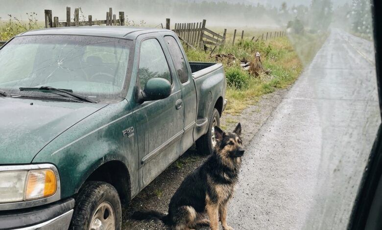 The dog wouldn’t leave the abandoned truck on the side of the road for days……
