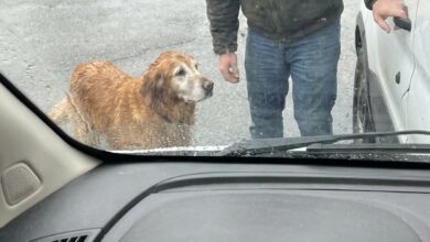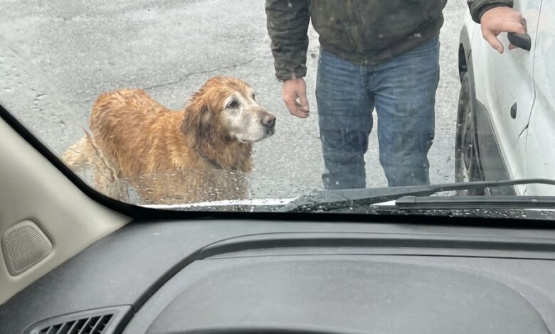 The moment I opened my car door for a quick stop, a muddy stray dog…