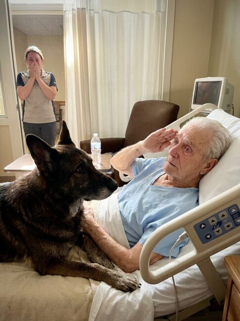 It’s a small nonprofit. They match retired working dogs — K9s, military working dogs, search-and-rescue — with veterans in end-of-life care. The idea is simple. Two old soldiers. Each of them waiting. Each of them alone.