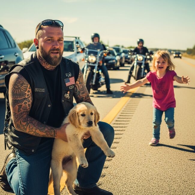 A Biker Risked His Life to Stop Traffic for a Lost Puppy — But When He Saw the Little Girl Crying, He Couldn’t Hold Back His Tears