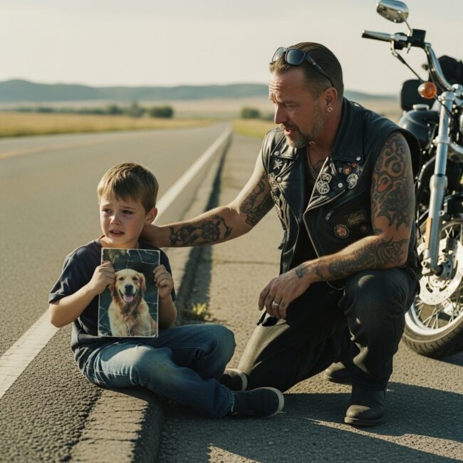 A Biker Stopped for a Lonely Boy Holding a Dog’s Photo — What He Heard Next Left Him Speechless