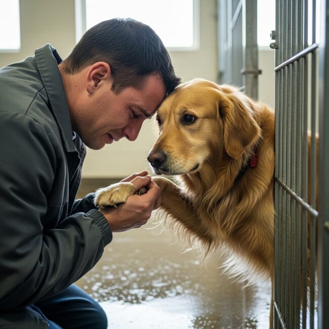The shelter was silent. Ray didn’t move for minutes. Then, finally, he bowed his head, pressing it against Buddy’s collar—his old one, still kept on a shelf.