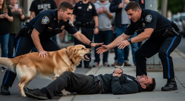 “Sir, step back—control your dog!” one officer shouted, though the man on the ground didn’t respond.