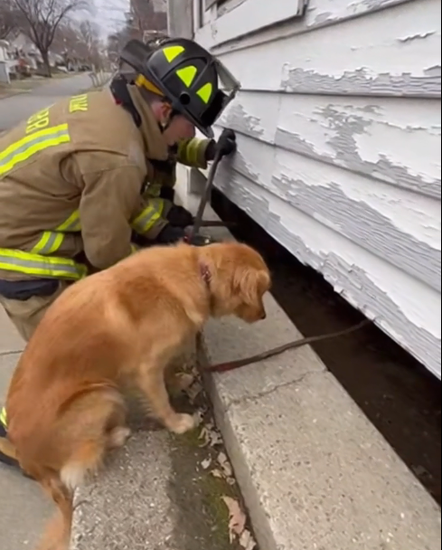 Two firefighters dropped to their knees without hesitation. One was a white man in his early forties, broad-shouldered, jaw set tight. The other, younger, eyes focused and quick. They slid flashlights under the porch, speaking calmly.
