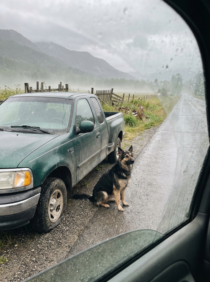 The dog hadn’t moved from that truck in four days. Its ribs were beginning to show. Rain had come through Wednesday night, and its coat was matted flat against its body. It sat in the mud beside the driver’s door like a soldier who refused to leave his post.