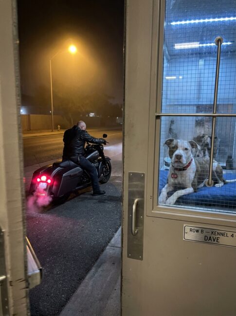 Russell still parks across the street from Pima Animal Care every single night at 11:47 p.m. He still idles his Road King for an hour. He still leaves at 12:47 a.m.