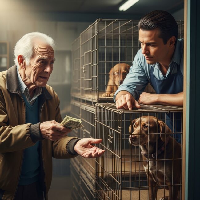 The pet shop owner stared at him, confused. The old man’s clothes were torn, his shoes held together by tape, and his trembling hands held a small bundle of crumpled bills — barely enough to buy lunch.