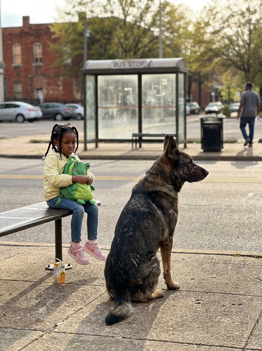 For five hours, while adult humans walked past her and crossed the street and filmed her and finished their sandwiches, an eighty-pound German Shepherd who had been homeless for two years did the one job he had been doing his entire life.
