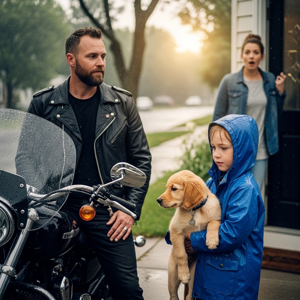 Biker Stopped to Help a Boy and His Dog in the Rain — What Happened at the Door Made the Whole Neighborhood Fall Silent