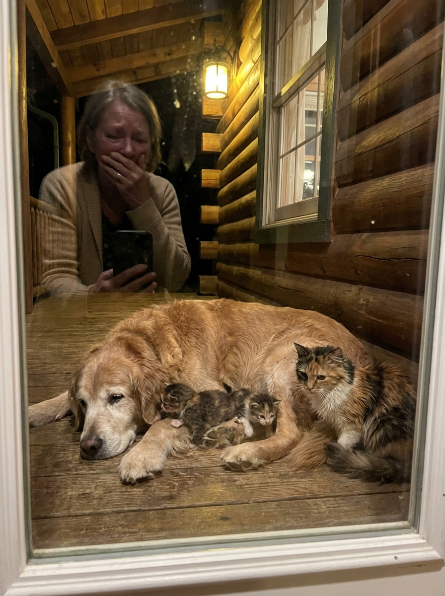Every night at exactly nine, my thirteen-year-old Golden would drag himself to the porch for a skinny calico who wanted no food, no petting, and somehow left me crying behind the screen door.