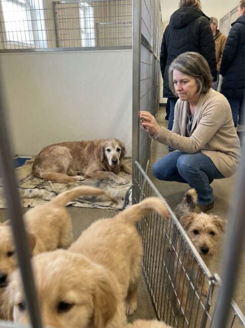 Linda stepped closer to the Golden Retriever pen. One of them stumbled forward, paws too big, nose pressing clumsily against the bars.