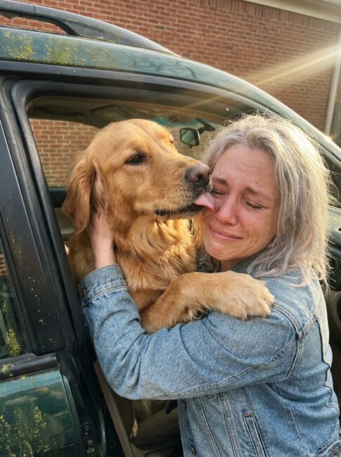 She cried in the Subaru with Moose’s chin on her shoulder, and Moose’s tail thumped in exactly the same rhythm he had thumped it for nine months, and Cassie thought — she told me later — even now. He’s doing the same thing he does every day.