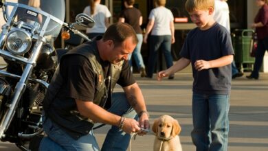 A Biker Stopped at a Supermarket Gate — What He Found Tied There Made a Little Boy Cry