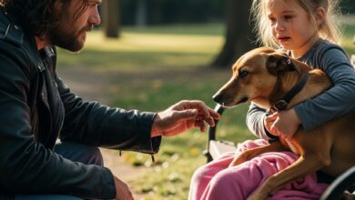 A Biker Stopped for a Sleeping Girl and Her Dog — What He Did Next Made the Whole Park Cry
