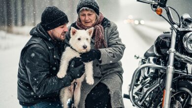 A Biker Stopped in the Snow — What He Did for an Old Woman and Her Dog Made a Whole Town Cry