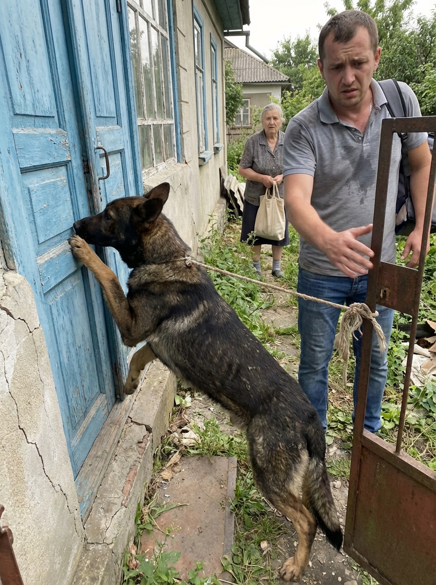 I thought the dog tied to the rusted gate was abandoned—until it barked just once, stepped in front of the door, and someone behind me whispered, “Don’t open that…”, so why was it stopping me?