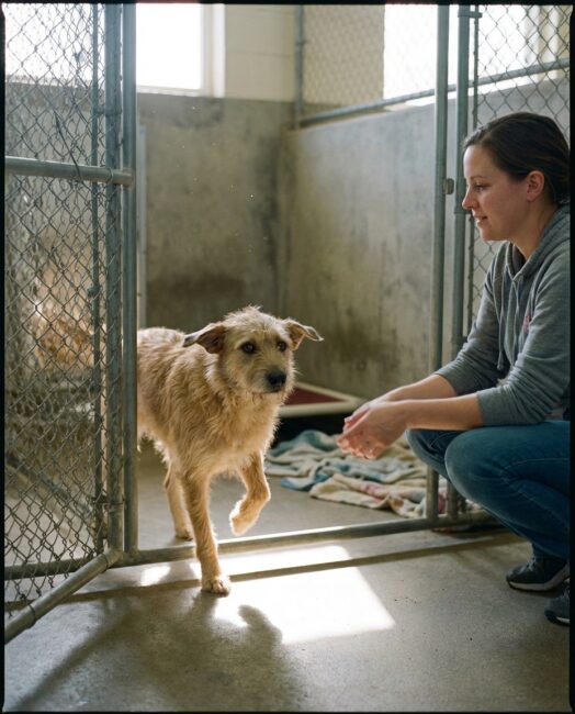 The shelter hallway was unusually quiet that morning. Most of the dogs had already finished breakfast. The metal gates had stopped rattling. Even the usual barking had faded into a low murmur somewhere down the corridor.