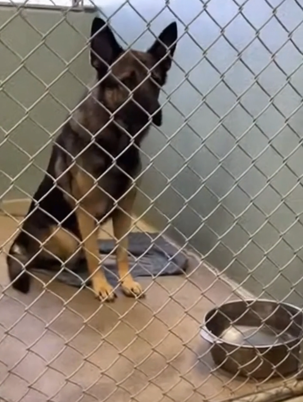 The dog lay still in the back of his kennel—until a distant police siren echoed outside, and he slowly stood up, as if something inside him had been called back to life.