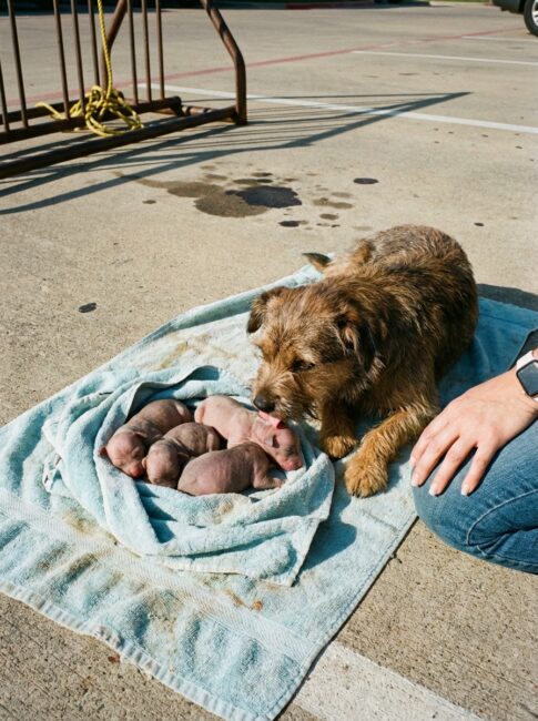 I called the store manager. His name was Dennis. He came outside with the expression of a man who expected to deal with a noise complaint and instead found a woman sitting cross-legged on the pavement next to a pile of newborn dogs.