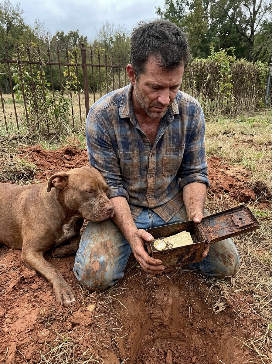 I knelt down and brushed the clay away with my hands. Ruby was beside me, breathing hard, her whole body vibrating. She nosed forward and pressed her face against the thing in the dirt, and she made a sound I’d never heard from her before — a low, sustained whine, almost a hum, like something inside her was finally releasing.