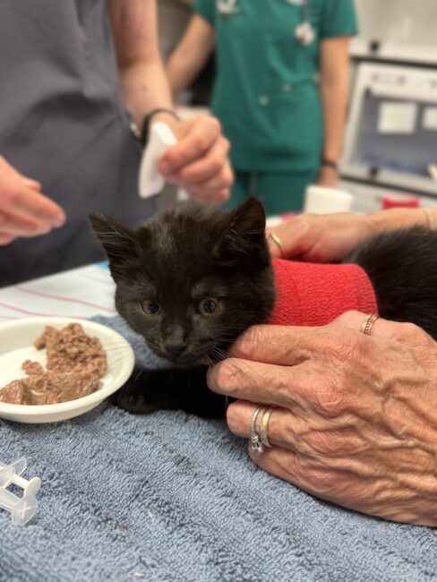 A few days later, Clara Barton was strong enough for surgery. The entire team held their breath as the operation stretched on for hours. Skilled hands removed damaged bone and tissue, working meticulously to give this kitten the best chance at a healthy, pain-free life.